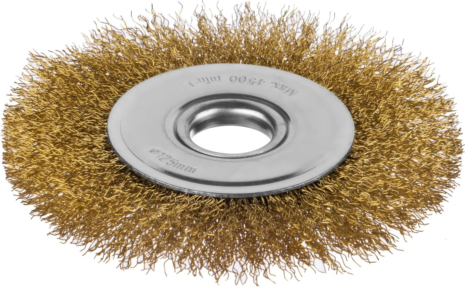 Корщётка на УШМ D-125ммх22мм дисковая/витая стальная латунированная проволока 0,3мм/MIRAX/35141-125